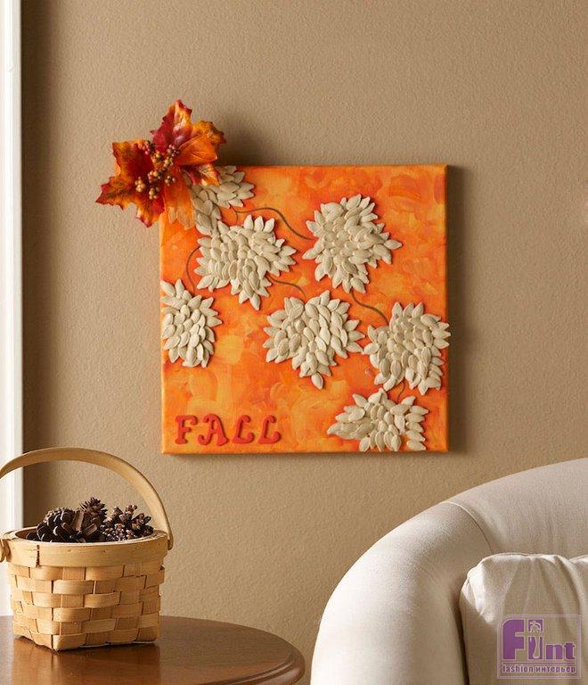 Восхитительное настенное панно в осеннем стиле из тыквенных семечек