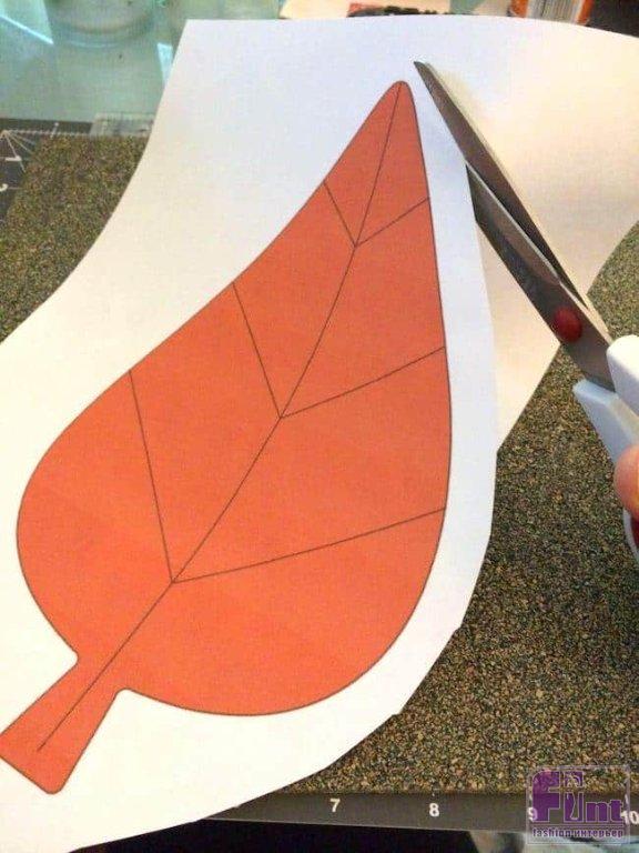 Обрежьте лишнюю бумагу с внешней стороны вашего большого шаблона листа, но пока оставьте узкий белый контур вокруг рисунка.
