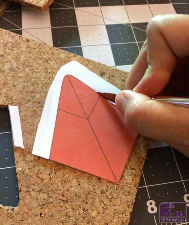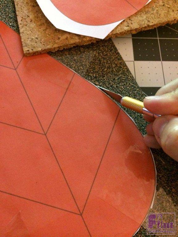 Обрежьте шаблон по всему краю с помощью ножа для поделок (не забудьте подложить коврик для резки). Когда вы будете обрезать белую часть бумаги, ведя нож по внешнему контуру листа, вы также будете разрезать листовую пробку. Теперь переходим к шаблону поменьше.