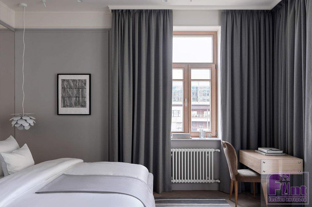 Шторы из плотной ткани прекрасно защитят комнату от сквозняков и задувающего в оконные и дверные щели ветра. Чем толще ткань и шире полотнище, тем лучше: все просветы между оконными откосами и интерьером будут надежно закрыты, да и сама стена будет дополнительно утеплена.
