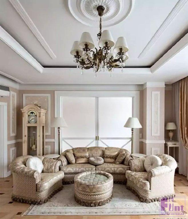Квартира изначально была со свободной планировкой, и для оформления хозяйка пригласила профессионального дизайнера. Гостиную с кухней и обеденной зоной сделали единым пространством, но между кухней и гостиной установили стеклянные перегородки, чтобы при желании зоны приготовления и приёма пищи можно было разделять. Хозяйка не любит яркие краски, поэтому весь интерьер выполнен в мягких и светлых тонах в классическом стиле. Такой интерьер на протяжении многих лет смотрится актуально и не надоедает.