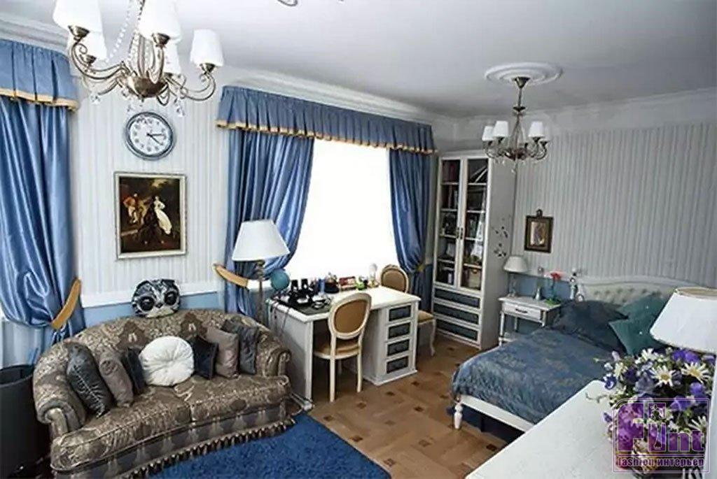 Детская комната в квартире Ирины Климовой оформлена в синем цвете, но эта цветовая гамма разбавлена белыми тонами. Комнату оформляли сразу для того, чтобы она подошла не только маленькому мальчику, но и уже вполне взрослому юноше. Без игровой зоны, сказочных героев и ярких кричащих деталей. Вся мебель выполнена на заказ по эскизам Ирины. Хозяйская спальня – по-настоящему женское пространство, оформленное в нежно-розовом цвете. Все предметы интерьера идеально подобраны в тон. Покрывало Климова привезла из Турции, а шторы и подушки сшиты по индивидуальному заказу.