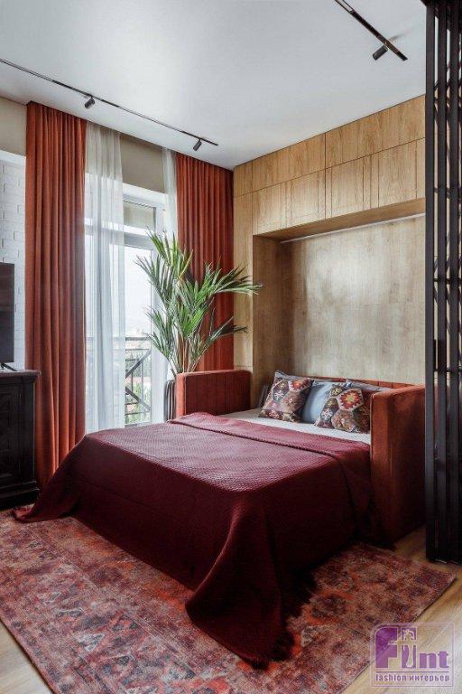 Ещё один интересный приём, который поможет эффектно вписать в пространство ковер: он должен контрастно выделяться на фоне пола. Например, в этой квартире на пол уложена плитка под дерево, и на достаточно тёмном фоне ярко выделяется простой ковёр молочного оттенка. На светлых же полах интересно заиграют тёмные или цветные модели ковров.