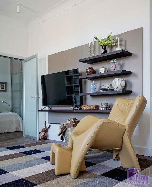 «Я люблю сочетать в интерьере разные стили и разные ценовые сегменты мебели и декора. Основное — диван и кресла — вещи, на которых не стоит экономить. Они должны быть эргономичны, удобны и хорошо выглядеть даже через 5 лет использования. Всё остальное — зеркала, картины, столики, пледы и подушки — это то, что рассказывает историю про клиента: куда он путешествует, что ему нравится в искусстве и то, что может быть бюджетным и купленным на эмоциях. Важно только правильно это вписать в интерьер. Заказчица активно путешествует и привозит много декора. В частности, все картины и вазы были приобретены до начала ремонта. Когда ремонт завершился, мы только развесили искусство по квартире, белые стены стали хорошей базой», — рассказывает о своём проекта автор.