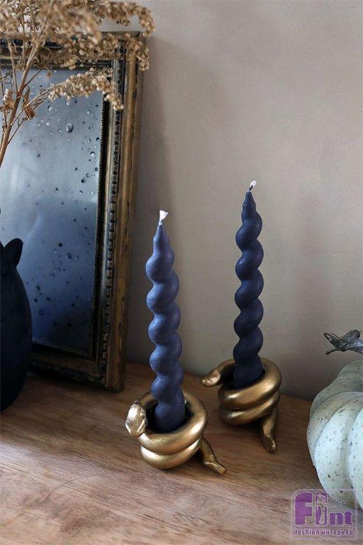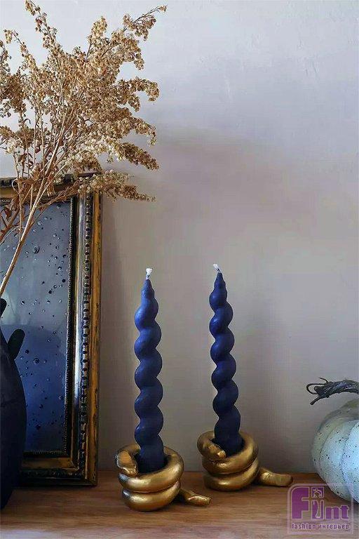 Теперь вставьте свои конусообразные спиральные свечи в кольца свернувшихся змеек и наслаждайтесь результатом своей работы! Эти шикарные подсвечники украсят ваш интерьер и станут отличным дополнением к уже существующему декору. Важно помнить, что горящие свечи не стоит оставлять без присмотра и обходится с открытым пламенем очень аккуратно.