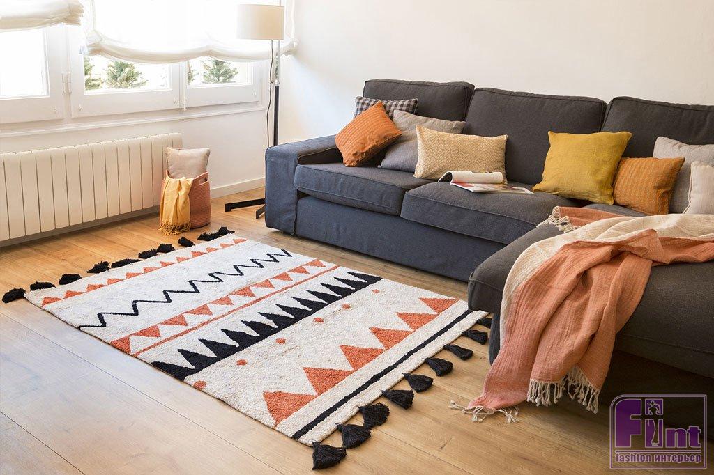Ковёр сделает более уютным любое пространство: спальню, гостиную, даже коридор. С помощью ковра можно добавить цвета или фактуры, выделить определённую зону, создать красивое цветовое сочетание с мебелью и декором. Подбирая ковёр, не забывайте, что он должен быть соизмерим с близко стоящей крупной мебелью. Иначе полотно ковра просто потеряется в масштабах комнаты и нарушит гармоничность композиции.