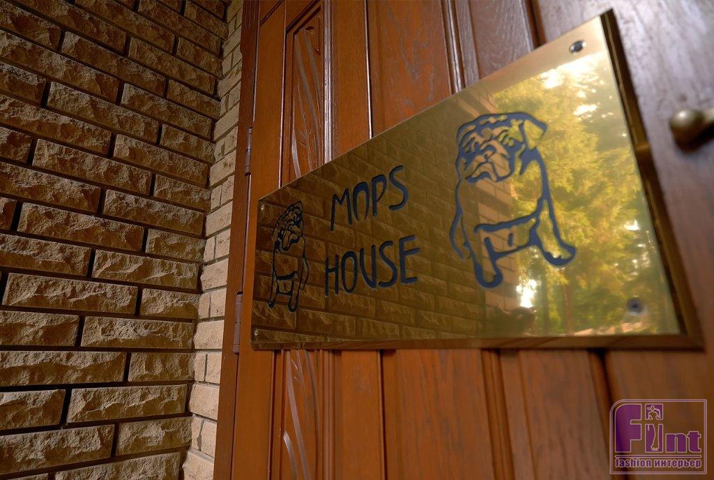 Внутреннее убранство коттеджа напрямую связано с увлечением Дарьи Донцовой — её безграничной любовью к мопсам. Даже на входе можно заметить табличку «Mops House», а интерьеры буквально заполнены изображениями и фигурками этих смешных собачек, их фото, статуэтками, вышивками. Писательница Донцова давно коллекционирует такие сувениры, а также содержит домашних питомцев-мопсов, которые отлично ладят друг с другом и с котом Донцовой.