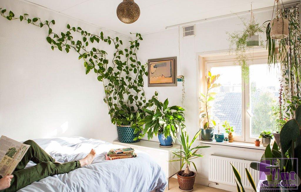 Простой и беспроигрышный вариант декора любого интерьера — комнатные растения. Подойдут они и для оформления белых стен. Особенно красиво будут смотреться разнообразные вьюны в подвесных кашпо или на полках. Ветви живых растений будут свисать вниз, создавая динамичный естественный узор на белой стене. Этот вариант декора подойдет для самых разных стилей интерьера, нужно будет только выбрать подходящее к интерьеру кашпо.