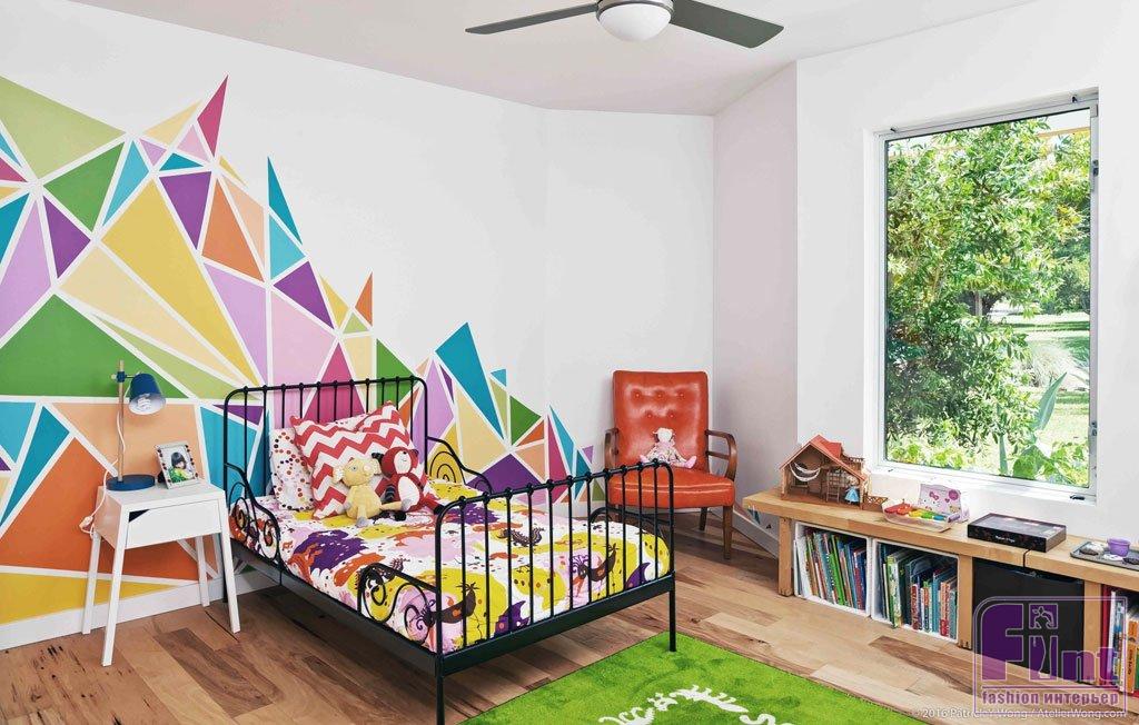 Смелый и броский способ оживить пустую белую стену — окрасить её часть в другой цвет. Можно использовать разные геометрические фигуры, простые орнаменты или даже окрашивание градиентом. Важно подобрать тон, который будет повторяться в других деталях интерьера: мебели, декоре или текстиле. В противном случае такое окрашивание может выглядеть странно и выбиваться из общего настроения. Этот совет, безусловно, актуален только тем людям, кто уже отказался от архаичных виниловых обоев и использует гладкие крашеные стены или фактурные стеклообои под покраску, которые выдерживают более 30 перекрашиваний, позволяя вам экспериментировать с интерьером так часто, как вы этого захотите!