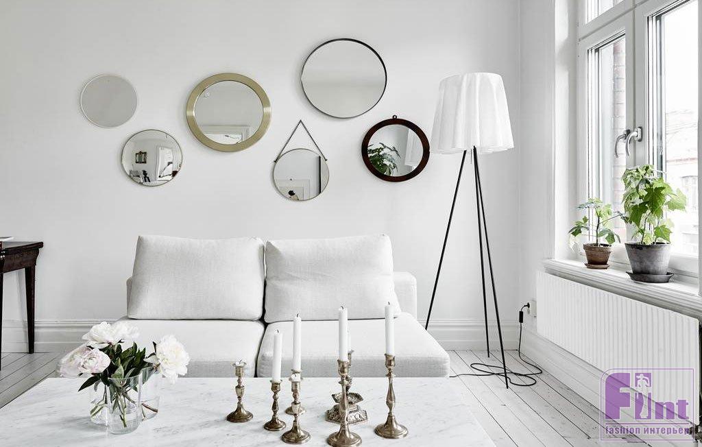 8. Украсьте белую стену универсальным аксессуаром – зеркалом.