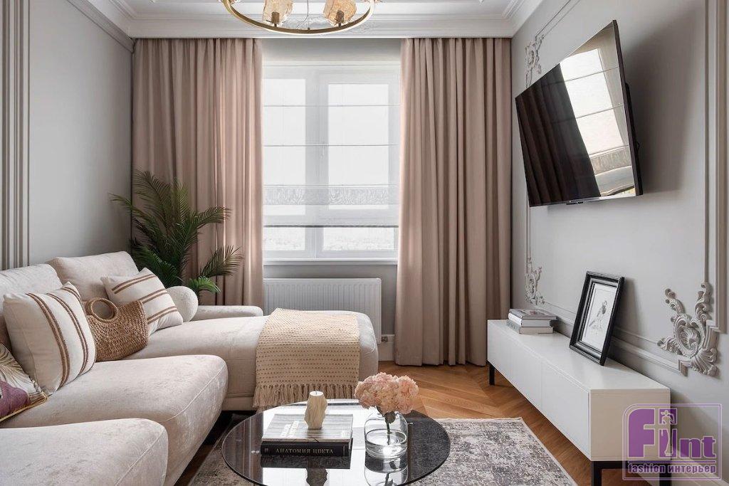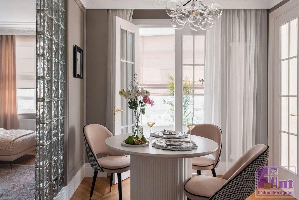 Дизайнер интерьеров Ирина Гугуева предложила перенести кухню в коридор, оформить удобную общую зону и отдельную спальню, а на лоджии создать прекрасное французское «кафе». И интерьер полностью удовлетворил пожелания хозяйки.