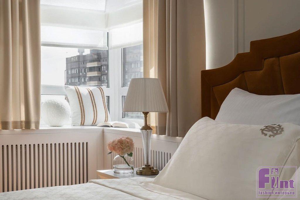 Комод в прихожей, тумба под телевизор в гостиной, ящики под кроватью с подъёмным механизмом стали дополнительными местами для хранения. Мебель по стилистике — комбинация современного стиля и лёгкой классики. Так, например, в спальне — кровать с мягким фигурным изголовьем и тумбочки с филёнками на фасадах ящиков. Фасады шкафов — тоже с лаконичными филенками. В гостиной — мягкий диван на ножках и тумба, которые по стилю, скорее, современные. На балконе, при этом, создана атмосфера французского кафе — круглый маленький столик и французские стулья с плетёными сидениями и спинкой. Многое из мебели выполнили на заказ. И не только. Так, например, в спальне закрыли радиаторы отопления решётками, их легко можно снять при случае. Подоконники усилили и сделали акриловыми. Получилось уютное место отдыха и для хозяйки, и для приходящих в гости внуков.
