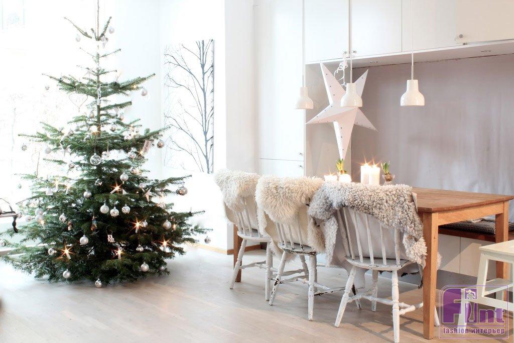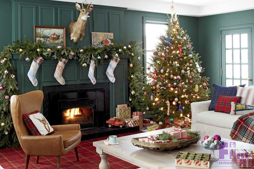 Этот стиль особенно органично будет смотреться в загородном доме, где есть камин. Он станет фокус-точкой всей композиции: можно повесить на него носки для подарков, поставить на портал венок и декоративные композиции, свечи, небольшие подарочные коробки для антуража. В городской квартире будет достаточно нарядной ёлки в гостиной. Не забудьте красиво сервировать стол для семейных посиделок.
