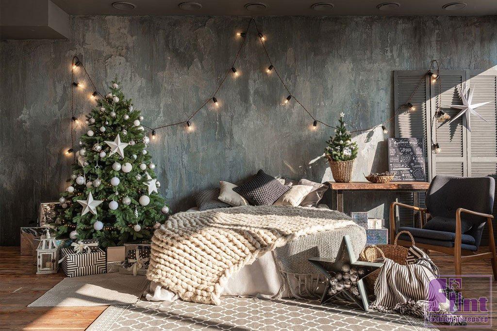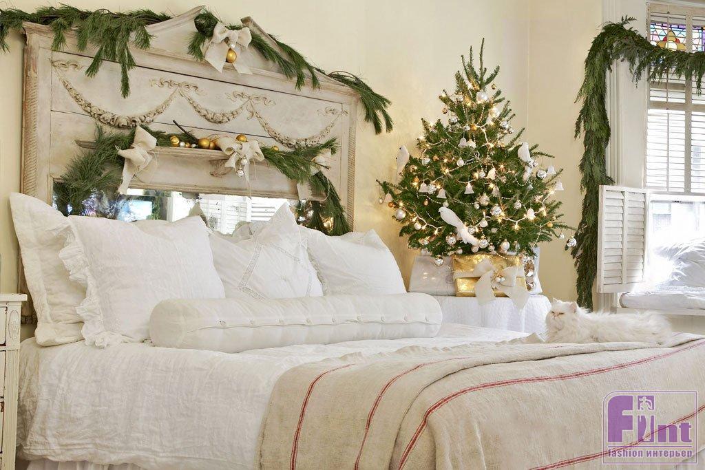 Спальня в первую очередь предназначена для отдыха, поэтому здесь не должно быть слишком много украшений, особенно ярких. Будет достаточно пары-тройки аксессуаров, создающих праздничное, но расслабленное настроение. Прекрасно подойдут свечи, постельное бельё и декоративный текстиль в соответствующей расцветке, гирлянды с мягким светом. На туалетный столик или подоконник можно поставить мини-ёлочку либо посадить красивую игрушку-дракончика.