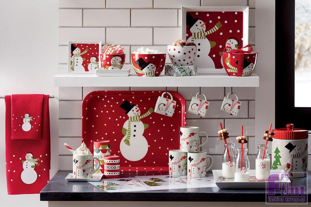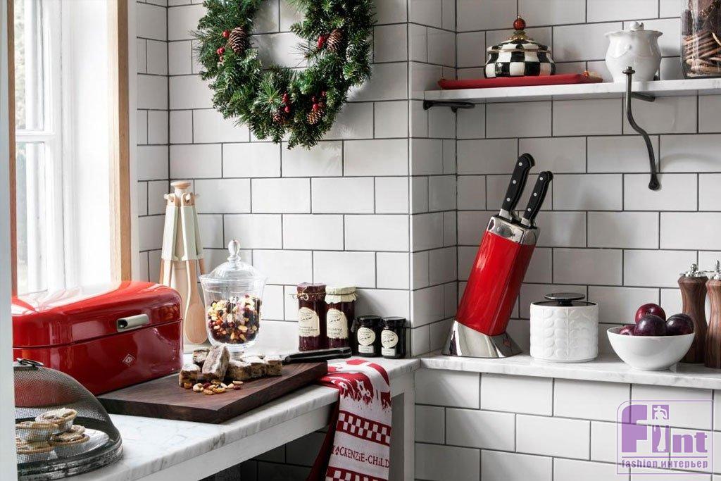А вот окна, дверь, обеденную группу можно как следует украсить. Используйте: скатерти и салфетки в праздничной тематике, букеты из веток и ягод в красивых вазах, соответствующую посуду, вазочки, корзины или банки с имбирным печеньем и другими сладостями, свечи на стол в высоких подсвечниках, гирлянды, развесы из сухофруктов или бумажных фигурок и т.д.