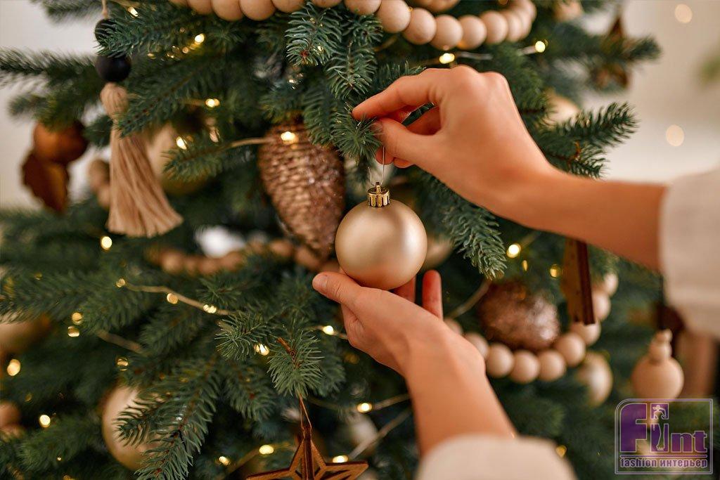 Перед тем как украсить ёлку гирляндой и игрушками, выберите определенный стиль: например, украшения могут быть деревянными, в стиле ретро или в тематике наступающего года. Придерживайтесь 2-3 цветов, а минималисты могут использовать монохромную палитру — она смотрится очень стильно. Не забудьте оформить основание деревца, особенно если оно некрасивое, и организовать рядом зону с подарками.