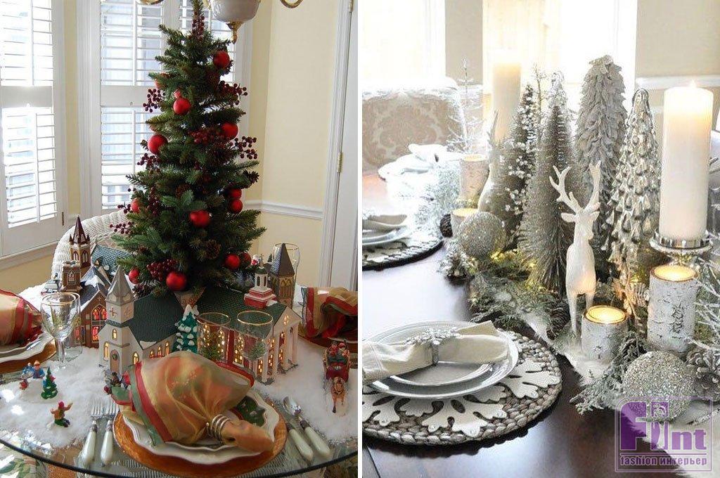 Безусловно, целое дерево поставить на обеденный стол не получится. Но вы можете создать украшение из мини-ели и шишек и поместить его, например, в деревянный ящик. Такой декор станет достойной альтернативной настоящей ели, да и просто маленькая искусственная ёлка на столе будет создавать праздничное настроение. Также в обеденной зоне можно поставить маленькую фигурку или разложить еловые ветки, обыграв их декоративными гирляндами, шишками, свечами.