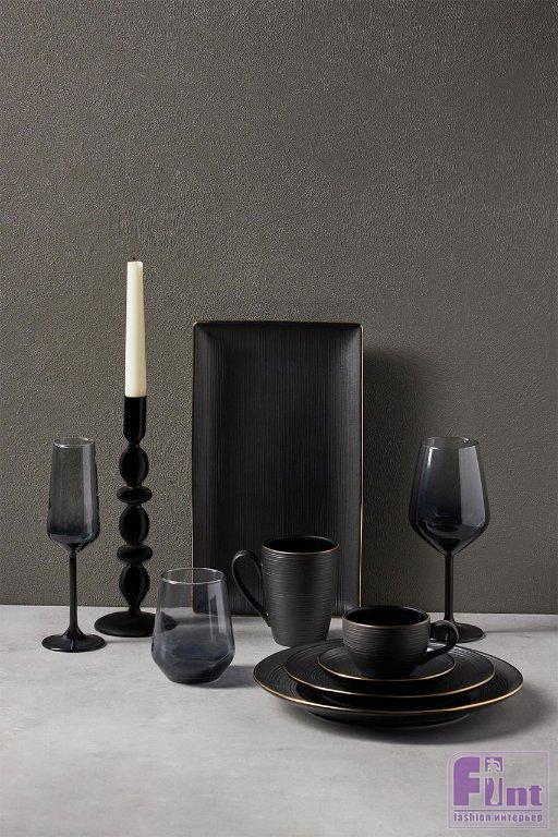 Помимо традиционной посуды обе коллекции включают всё необходимое для сервировки праздничного стола в едином стиле. Так, в коллекцию Black Line, наряду с бокалами, тарелками, блюдами и кружками, включены скатерти двух базовых размеров, сервировочные салфетки и кольца к ним, а также два вида стеклянных подсвечников. Первый – это классическая вариация строгого подсвечника на фигурной ножке, а второй – более привычный для современных интерьеров подсвечник в виде стакана с тематическим узором.