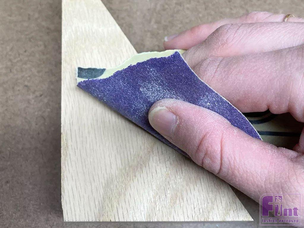 После распила заготовок древесина может оказаться шероховатой, поэтому, используя наждачную бумагу, отшлифуйте заготовки до необходимой степени гладкости. Чтобы заготовки были идеально гладкими может потребоваться наждачная бумага средней и мелкой зернистости. После шлифовки заготовок, удалите с них древесную пыль с помощью подходящей тряпочки.
