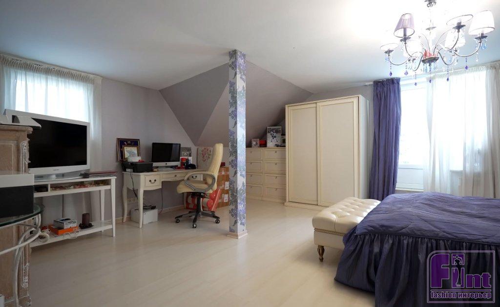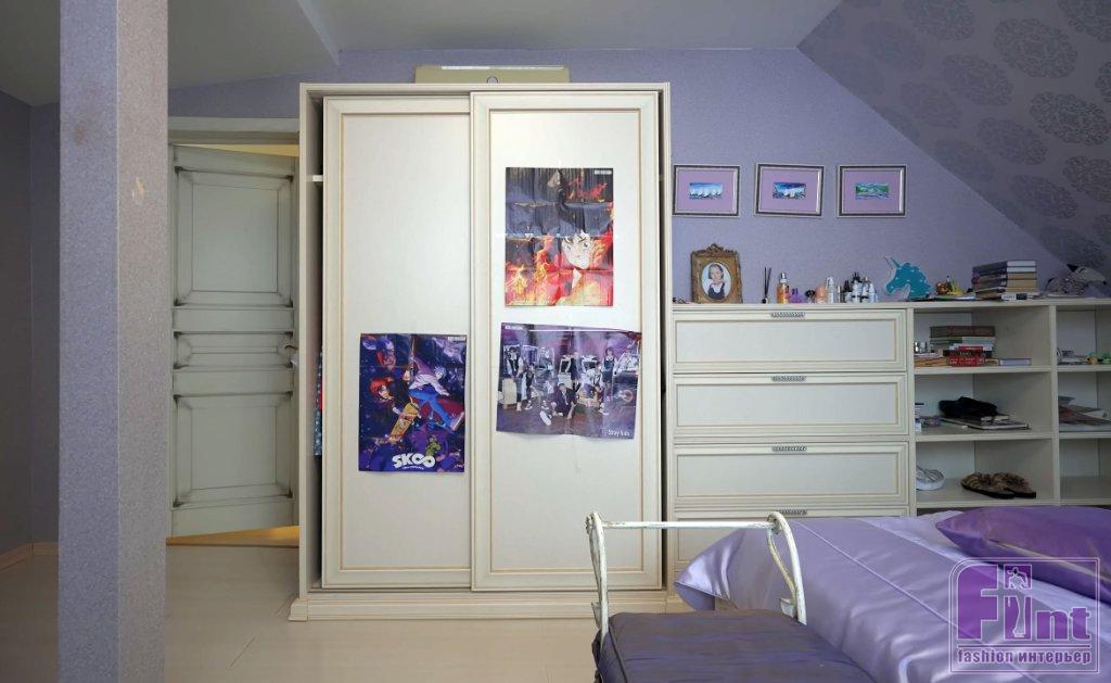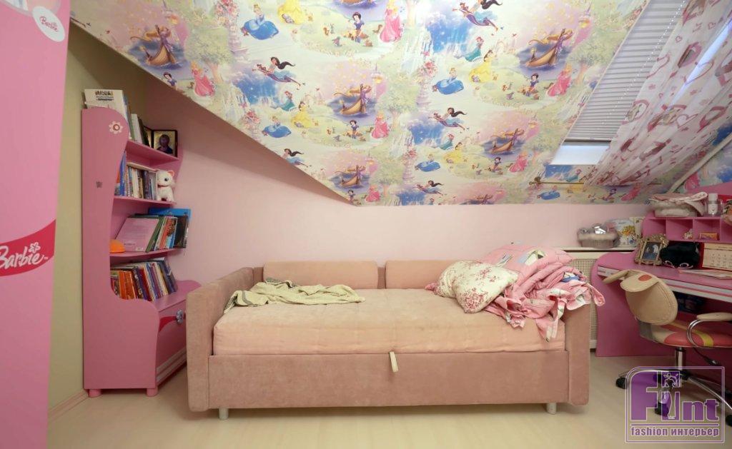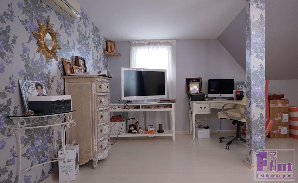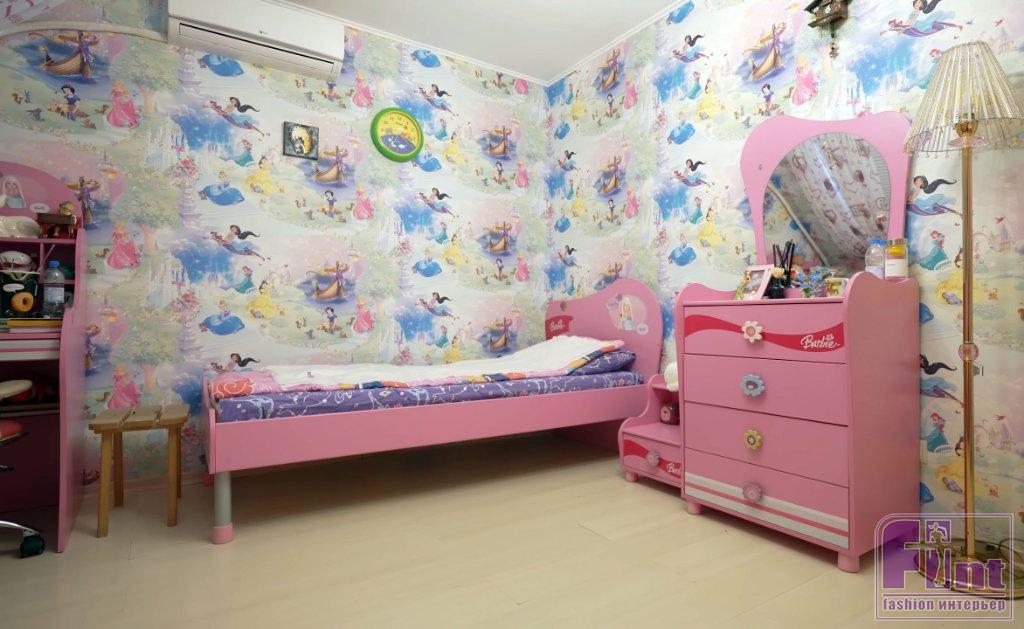 Второй этаж занят спальнями детей и небольшой гардеробной. Двери в помещениях яркие, с витражными вставками. Комната девочек оформлена наподобие замка принцессы – с яркими обоями, розовой мебелью, сочным постельным бельём, нежными шторками и множеством игрушек. Вся обстановка тоже сделана из дерева ценных пород, как и напольное покрытие.