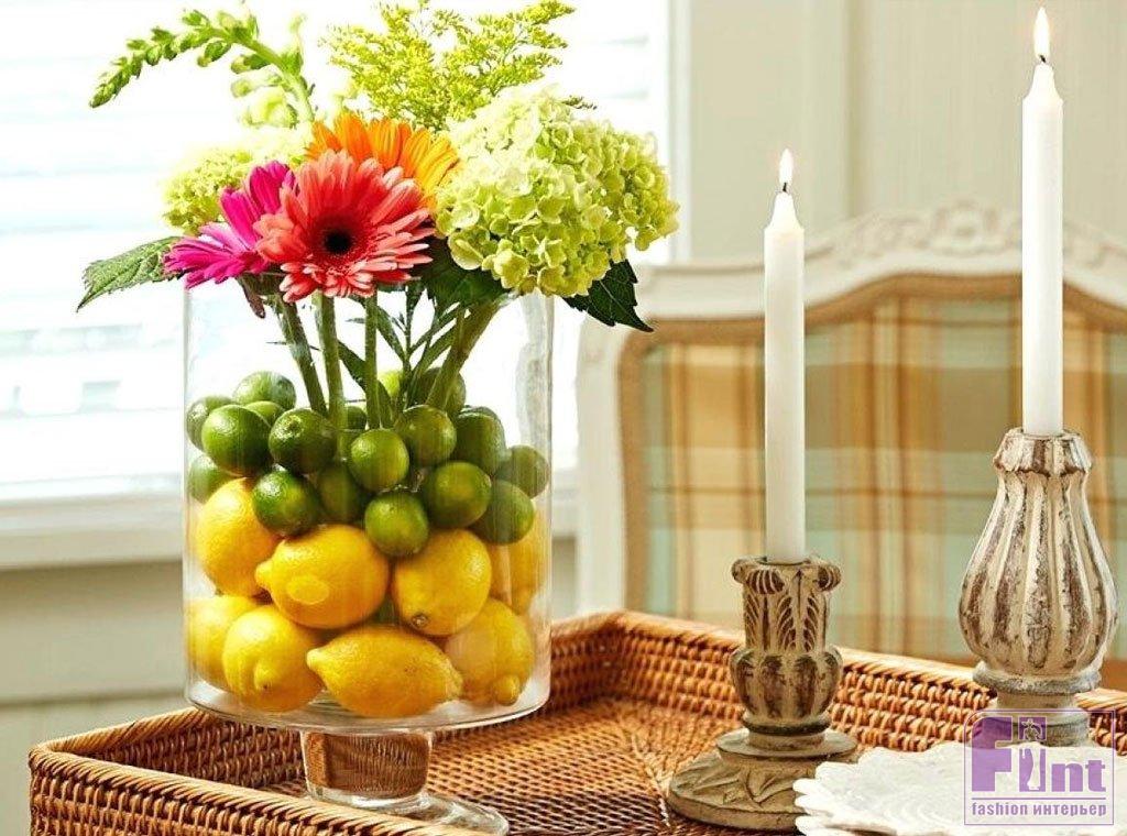 Фрукты и цветы — универсальный декор, который никогда не выйдет из моды. Вазы с букетами, тарелки с яркими апельсинами, гранатами или яблоками всегда добавляют жилью уюта и разбавляют нейтральный интерьер. Главное правило — они должны быть настоящими, не муляжами. Сочетайте в композициях и цветы, и фрукты, и овощи. Складывайте в красивые блюда или оставляйте на столешнице. Можно разбавлять их высушенными растениями, орехами или камушками — всем, что подходит под задуманную концепцию.