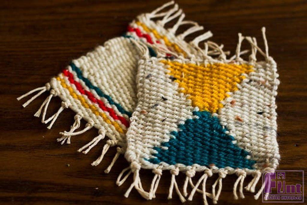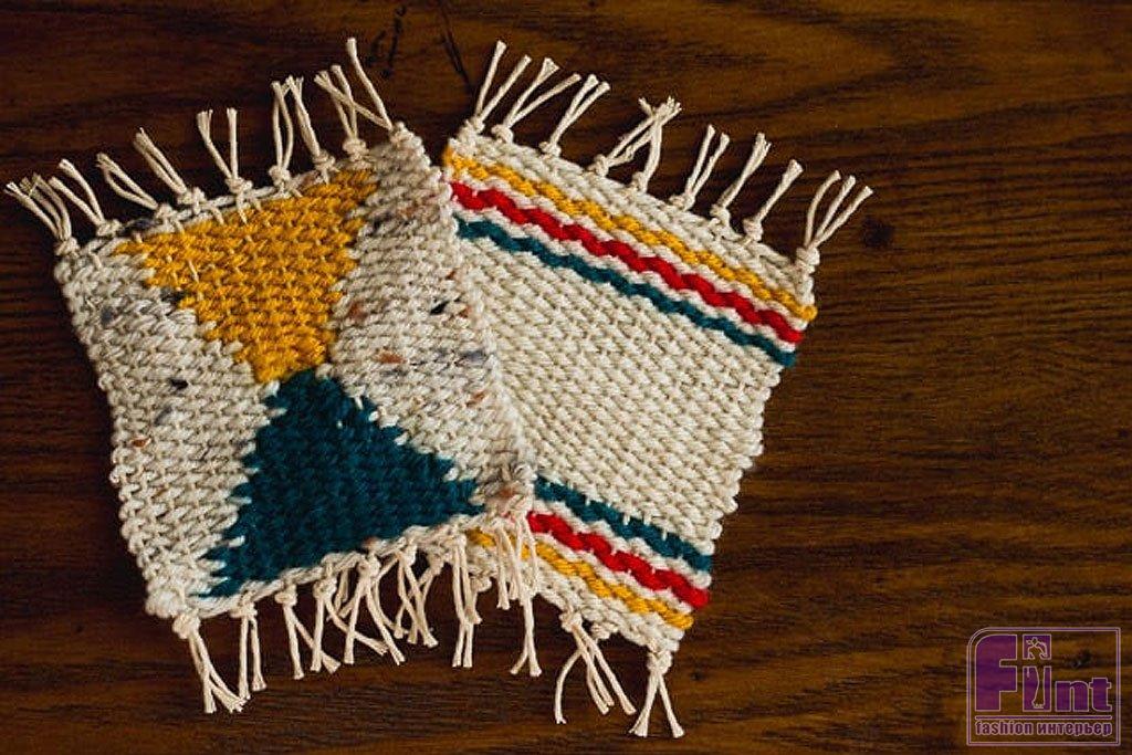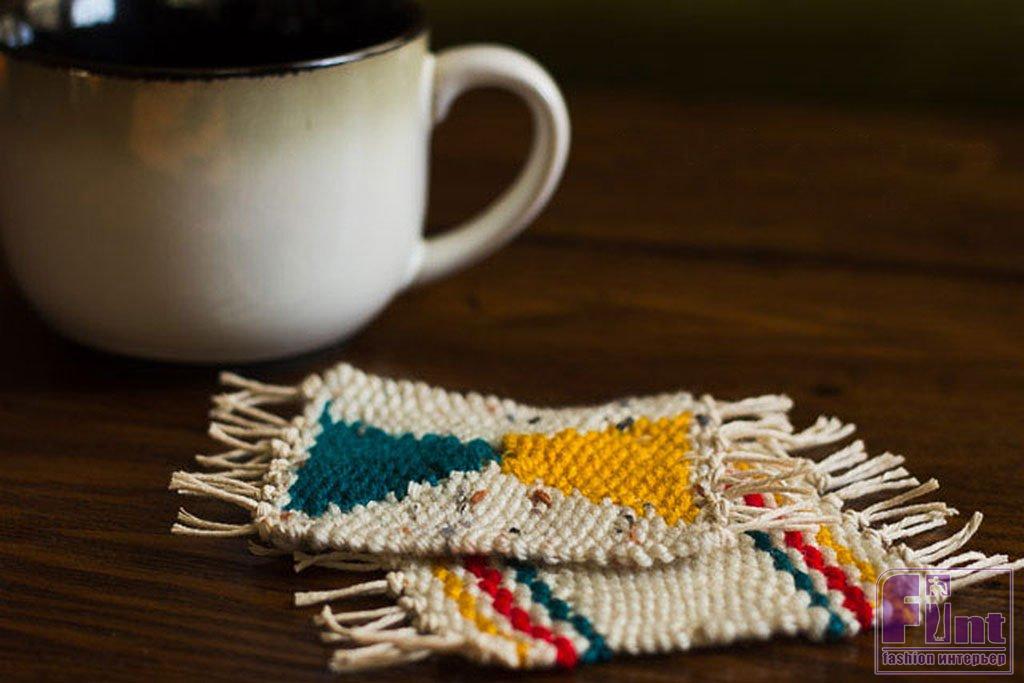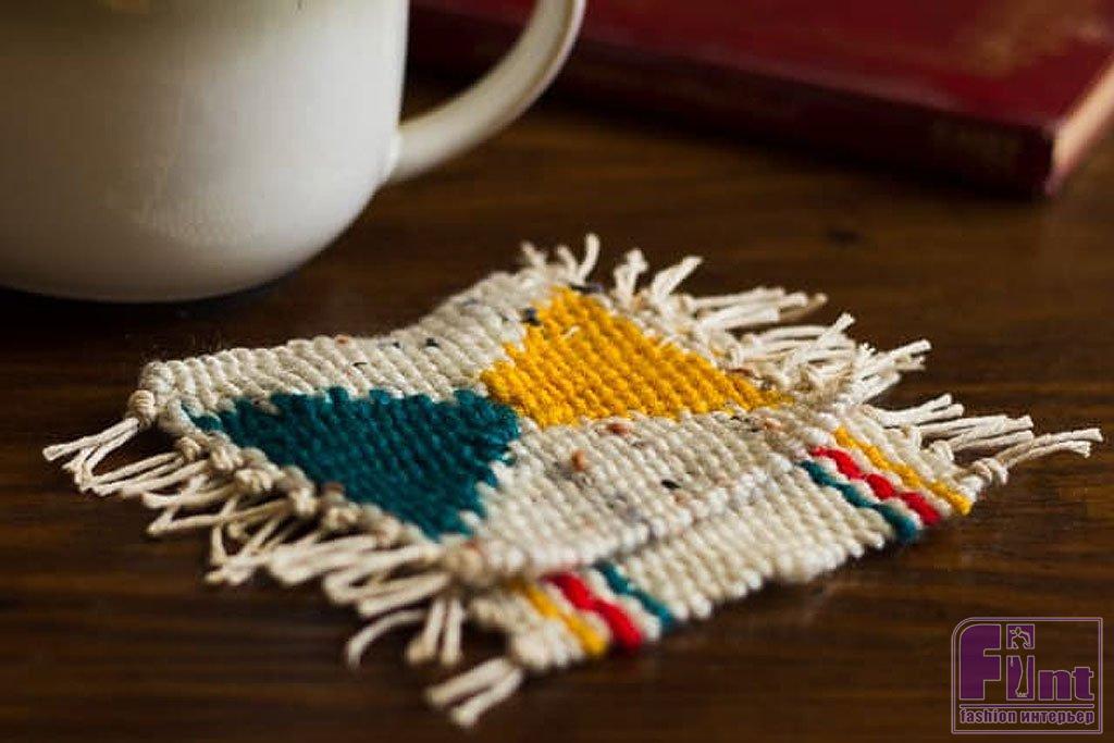 Вот и все! Поздравляем вы стали почти настоящим ткачом, и сделали своими руками эти удивительные плетёные коврики-подставки в этническом стиле! Эти коврики можно использовать в качестве подставок под кружки, постелить их под вазу с цветами, поставить на них небольшую миску для мелочей, или использовать по своему усмотрению. Кроме этого, такие коврики могут стать отличным подарком для ваших друзей и близких, а с учетом того, что выбор цветов и способов плетения просто огромен, такие коврики можно сделать с учётом именно вашей цветовой гаммы интерьера.