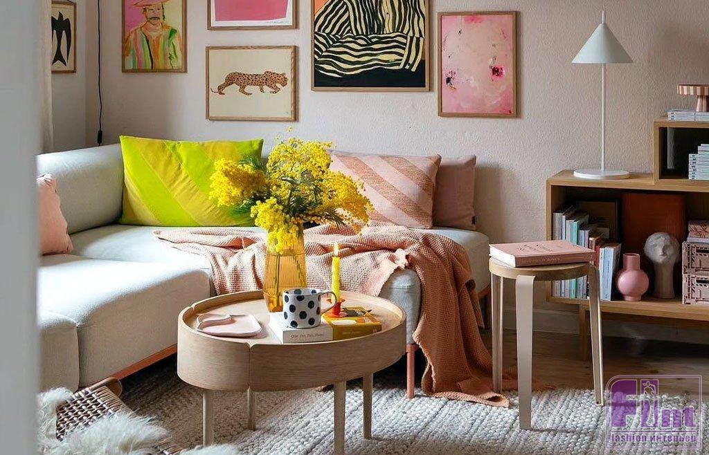 Разнообразные растительные мотивы сразу намекают на весеннее настроение. Создать его в доме также можно, прибегнув к определенной палитре. Голубой, розовый, жёлтый и их сочетания смотрятся свежо, ненавязчиво, стильно. С наступлением весны замените пледы, покрывала, чехлы на декоративных подушках — и квартира сразу «задышит» весной. Чтобы поддержать текстиль, обновите еще и постеры в рамах. Если все же хочется добавить цветочных историй, то отдавайте предпочтение сдержанным и неброским принтам или, напротив, нарочито наивным. Они выглядят менее банально.