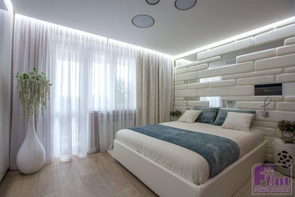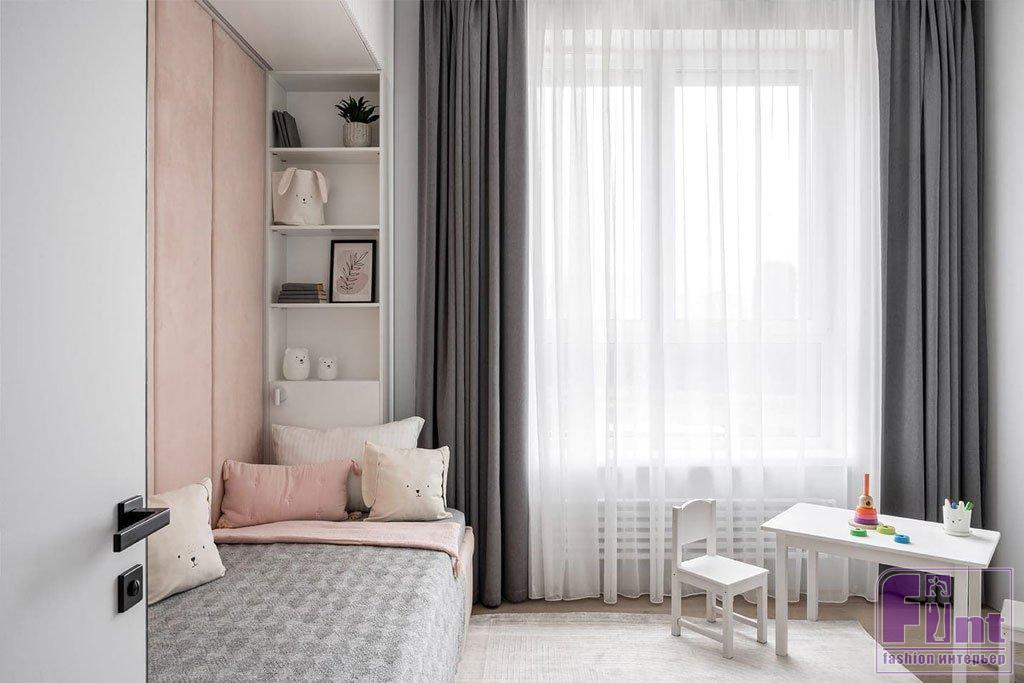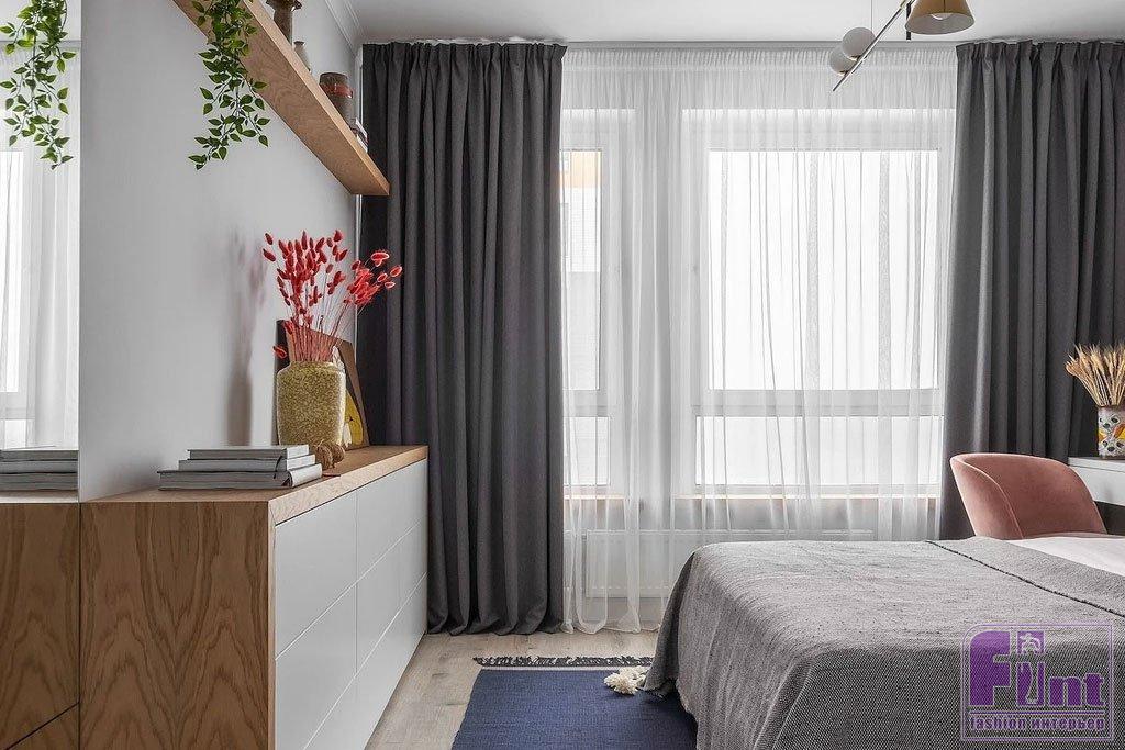 Отдельный вопрос — спальни и детские. Многим требуются плотные шторы и полное затемнение, поэтому считается, что такой приём не подходит для жилых комнат. Но это не так, есть как минимум три ситуации, в которых тюль будет уместен в спальной зоне как единственное обрамление окон: