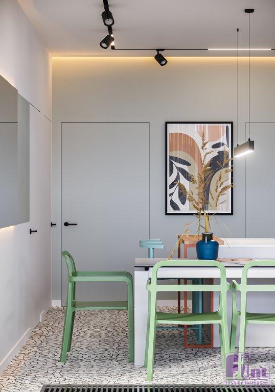 «Основная идея проекта — создать функциональный, светлый, гармоничный, лёгкий и уютный интерьер с яркими акцентами в современном стиле для сдачи в аренду. Интерьер должен был быть светлым, можно сказать, универсальным, но при этом не скучным, чтобы удовлетворял потребности большинства людей. Так как квартира предполагалась сдаваться в аренду и располагается в спортивной деревне горнолыжного курорта в Охта Парке, то потенциальный портрет клиентов — это состоятельные люди, которым важно ощущение покоя от нахождения на природе, но при этом ведущие активный образ жизни» — дополнил свой рассказ о проекте автор.