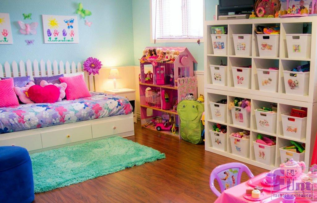 Детская — место, где всегда будет множество мелких предметов. Игрушки, учебники, ручки, карандаши — всем этим ребенок пользуется ежедневно, и далеко не каждая вещь отправляется на своё место. Если куча мелочей лежит по углам или на поверхностях, появляется ощущение хаоса — о цельности интерьера и красоте не может быть и речи.