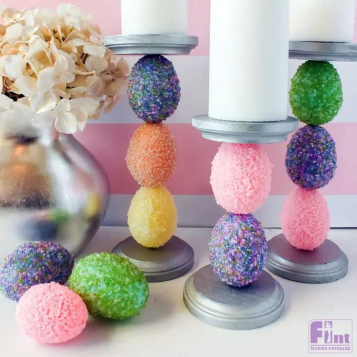 Необычный пасхальный подсвечник с яркими пасхальными яйцами