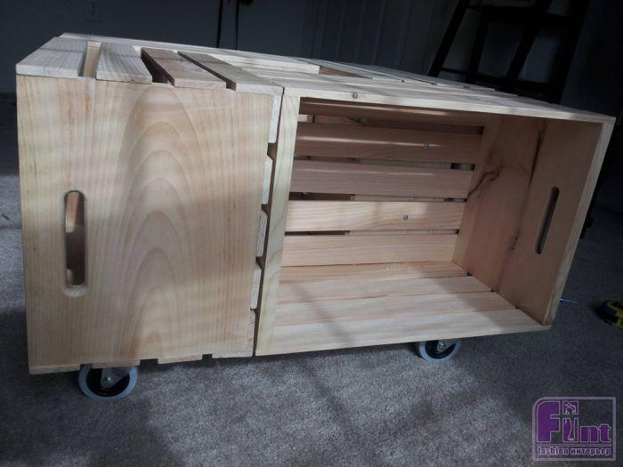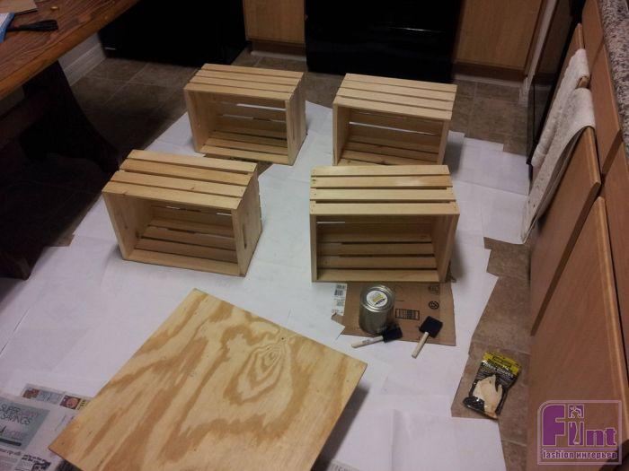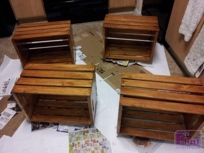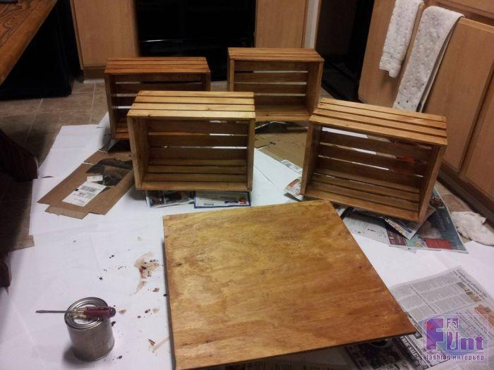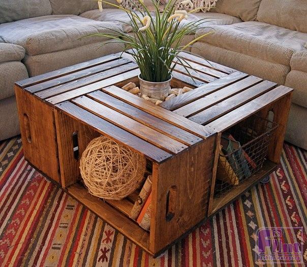 При помощи четырех ящиков из под вина и несколько других мелочей можно без особого труда сделать весьма стильный предмет мебели - домашний журнальный столик.