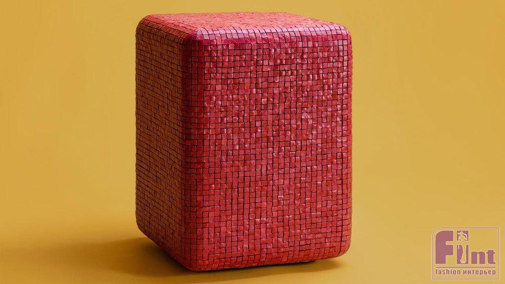 «Сухарик до сих пор не определился со своим статусом в семействе „Проживанцы“, так как постоянно совмещает функции декоративного столика, тумбы-подставки и табурета», — говорит Михаил Курносов. В оформлении изделия использована смальта с ручной выкладкой в технике классической мозаики.