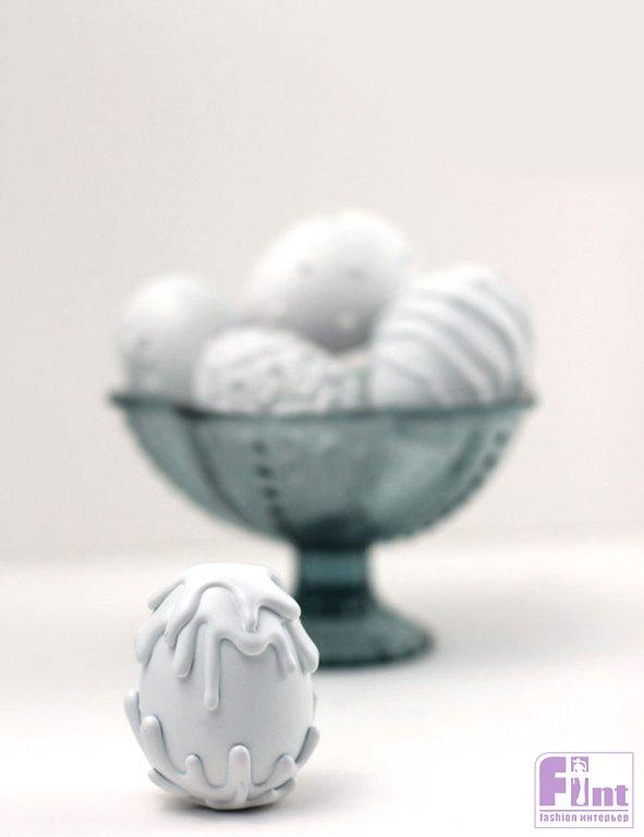 Старайтесь наносить тонкие слои краски, и не стремитесь закрасить текстуру яиц за один раз, чтобы на поверхности не образовывались подтёки краски. Если действовать аккуратно, у вас получатся идеально окрашенные пасхальные яйца с объёмным 3D декором.