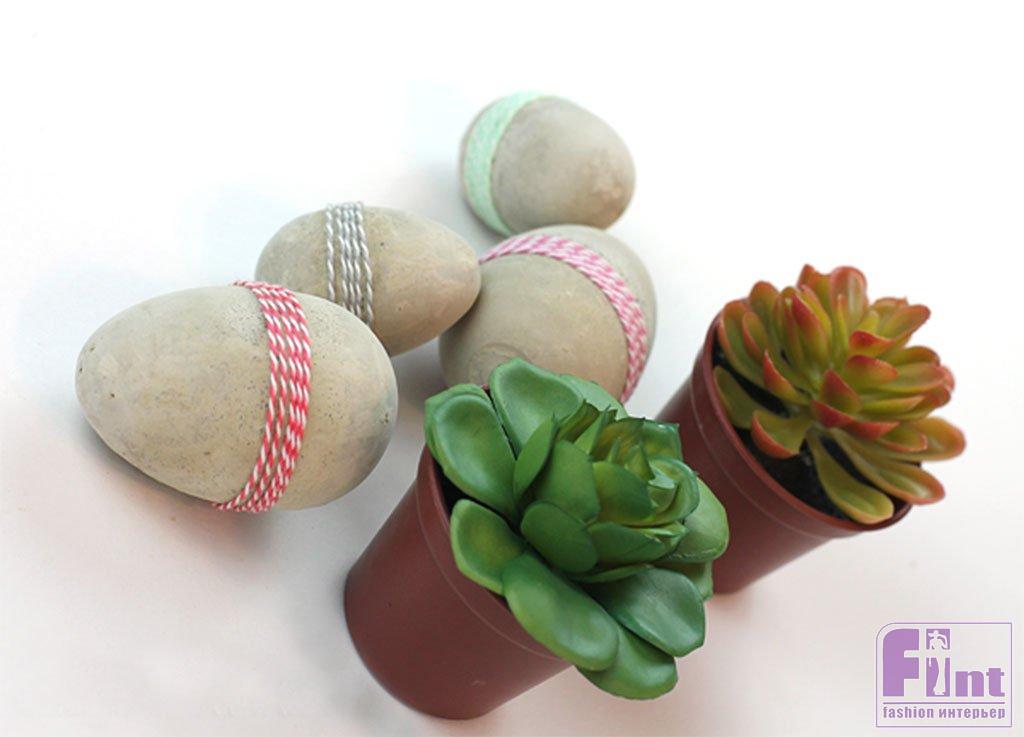 Цемент уже давно включён в арсенал любителей рукоделия. Из него изготавливают подсвечники, держатели для книг, сувенирные подставки и тарелки, а также различные интерьерные аксессуары, вплоть до кашпо для цветов и плафонов светильников! Изделия из цемента обладают неповторимой харизмой, благодаря особой текстуре и цветовой гамме материала. И пасхальные яички из цемента выглядят невероятно стильно!