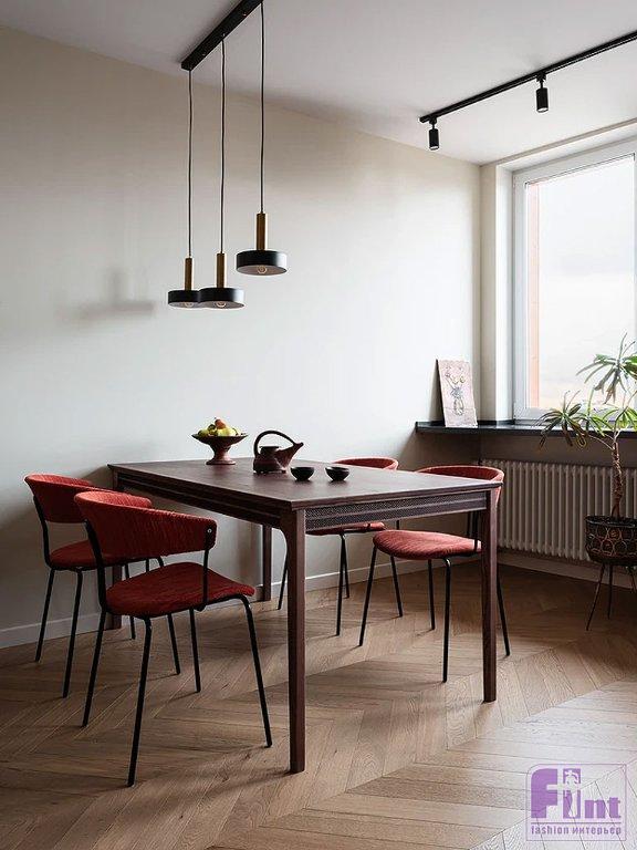 «Заказчица с трепетом вспоминает квартиру бабушки в сталинской высотке. Поэтому пришла идея использовать предметы мебели в стиле mid-century, который к тому же отличается своей функциональностью и лаконичностью, что отлично подходит для нашего небольшого пространства. Для поддержки концепции проекта и формирования духа 60-х годов были выбраны природные и в то же время яркие оттенки — изумрудный, малиновый, синий. Присутствие натурального дерева и нейтральной бежевой палитры в качестве основы интерьера позволили очень органично соединить яркие цвета и фактуры» - поделилась своим мнением о проекте его автор.