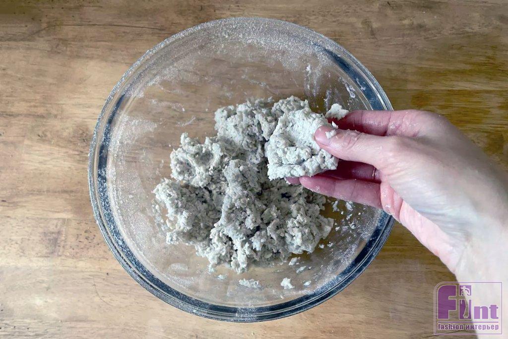 Распределите пасту папье-маше по формочкам, плотно прижимая её и разглаживая, чтобы удалить с поверхности комочки и избежать трещин. Старайтесь, чтобы слой папье-маше был толщиной около 10-12 мм.