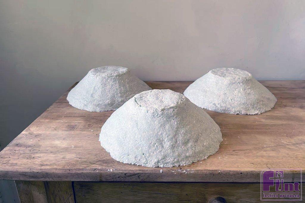В этом мастер-классе мы будем использовать готовую массу для папье-маше (паста для творчества), благо стоит она сегодня в популярных интернет-магазинах совсем недорого. Вместе с тем, используя многочисленные советы из сети, такую массу для папье-маше можно без особого труда сделать самостоятельно, сэкономив 300-400 рублей. Мы создали эту вазу, используя три чаши в качестве формочек, а затем склеили получившиеся детали вместе. И нам очень понравилось, что органичная форма и шероховатая поверхность этой вазы придают помещению приятную текстуру и интригу.