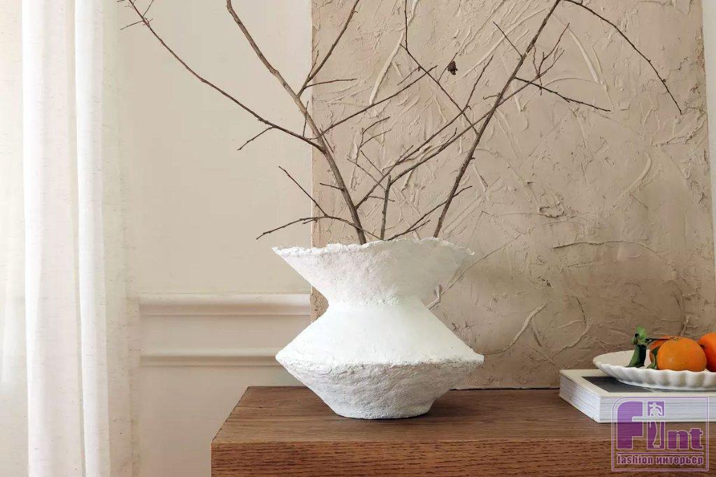 После высыхания покрасьте вазу в желаемый цвет. Краска также поможет немного выровнять поверхность вазы и придать ей более декоративный внешний вид. Подбор цвета для окрашивания вазы полностью зависит от вашего желания и цветовой гаммы вашего интерьера. Мы выбрали для окрашивания оттенок белого цвета, отлично сочетающийся с интерьером и делающим вазу похожей на гипсовое изделие древних гончарных мастеров.