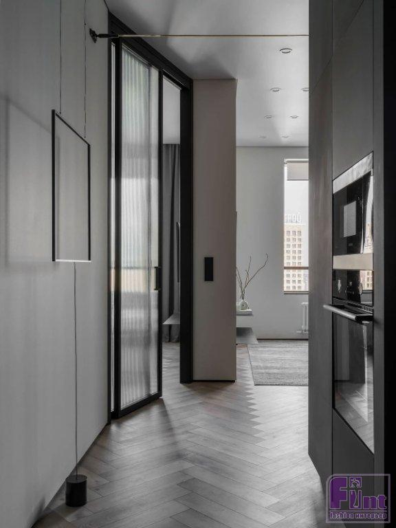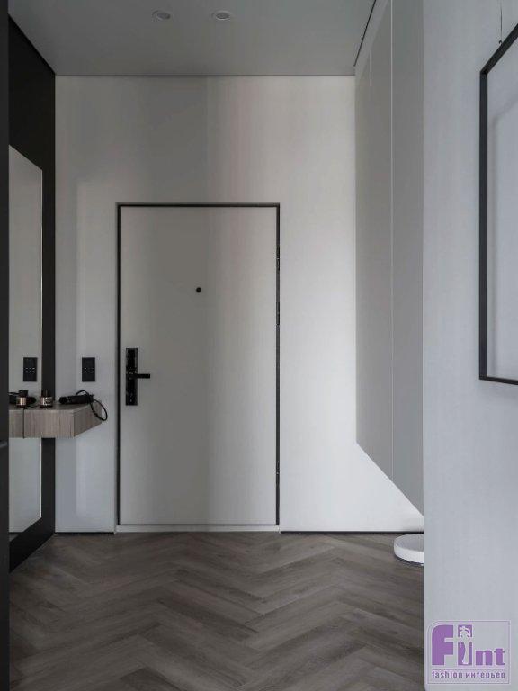 Владелица этой квартиры — молодая девушка. К дизайнеру Елизавете Филипповой она обратилась с запросом на аскетичный и минималистиный интерьер: простые формы, чёткие линии. При этом хотелось, чтобы пространство выглядело не скучно. Было важно продумать такой интерьер, который сохранил бы свою актуальность еще минимум 10 лет. В планах хозяйки — завести собаку. И это значило, что отделка должна быть антивандальной. Также важный запрос состоял в том, чтобы использовать в будущем интерьере конкретную модель светильника — подвес в форме квадрата с отражающим светом.