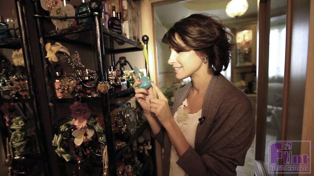 По дороге на кухню на кованых стеллажах представлена парфюмерная коллекция Анастасии Макеевой. «Я, как Кощей, дорожу каждым из этих ароматов, все они для меня важны и все они мне нужны», – говорит актриса. Коллекция насчитывает не меньше 90 склянок с духами. Среди них есть и массовые ароматы и эксклюзивные. Особенно дорога хозяйке бутылочка духов «Сальвадор Дали», доставшихся Анастасии от мамы.