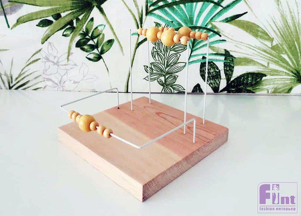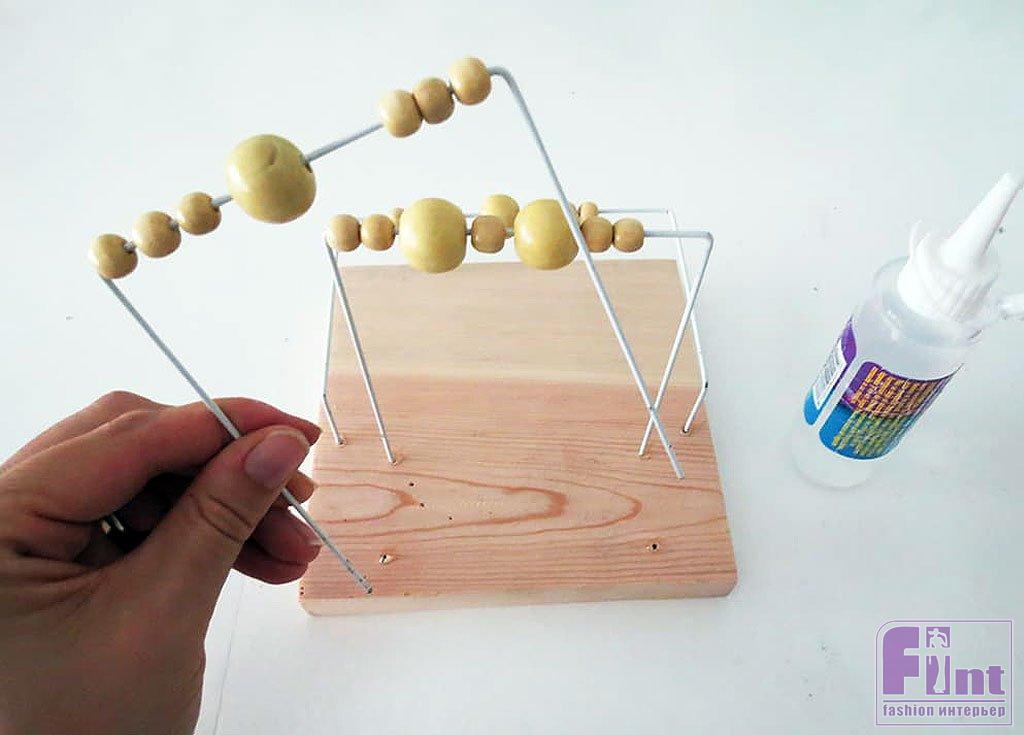 Возьмите деревянную основу и нанесите немного клея на каждое отверстие. Вставьте проволочные рамки в отверстия и подождите, пока клей высохнет.