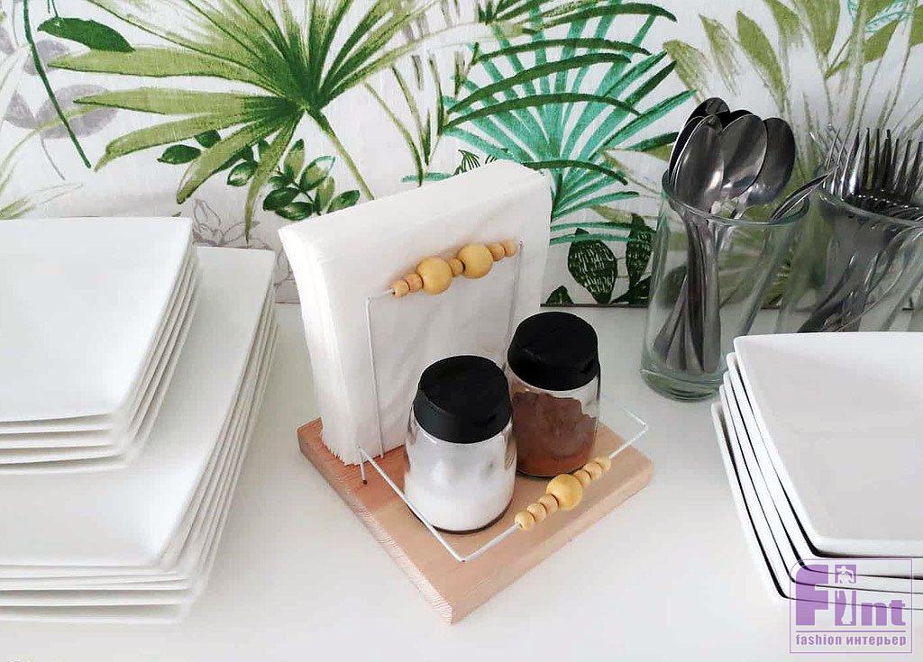 Предлагаем вам сделать своими руками удивительно стильную подставку для салфеток, совмещённую с держателем ёмкостей со специями. Что важно, обойдётся нам такой прекрасный и полезный аксессуар буквально за копейки! А сделать его можно будет всего за полчаса, даже не имея особых навыков в рукоделии!