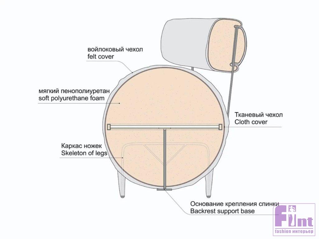«Lymphochair является пилотным продуктом коллекции MicroWorld, — рассказывает дизайнер. — Он напоминает крошечного стража нашего тела — лимфоцита. Сферическая геометрия Lymphochair представляет собой один из моих эргономических экспериментов и даёт терапевтический эффект. Материалы — войлок ручной работы, фанера, пенополиуретан, кованые вручную металлически опоры. Мягкий чехол легко снимается и стирается, несмотря на особую геометрию материала».