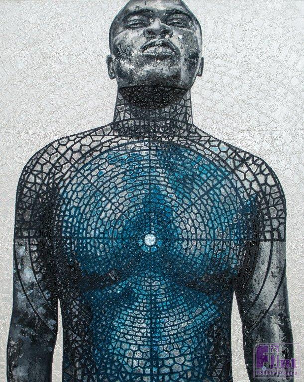 Именно в Центральной Нигерии впервые были найдены терракотовые и бронзовые скульптуры, похожие на античные. Маски и человеческие фигуры присутствуют в искусстве этой страны и сейчас. Годвин Арикпо — художник из Нигерии. В его работах сочетаются инсталляция и разные виды живописи, вставки из бисера и алюминиевых листов. На московской выставке он представит серию картин под названием «Небесное сближение», изображающих фигуры мужчин и женщин.