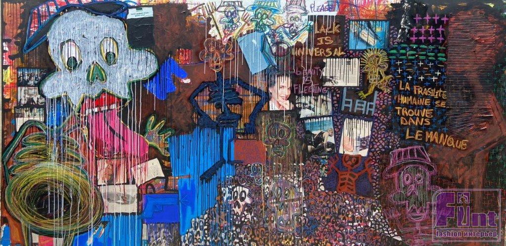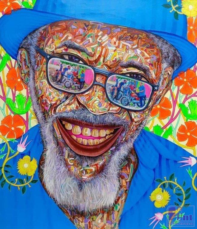 А вот Фистон Макета учился рисовать самостоятельно, с самого раннего детства. Его работы очень яркие, они сочетают узнаваемые портреты самого художника или его друзей, выполненные с элементами абстракции.