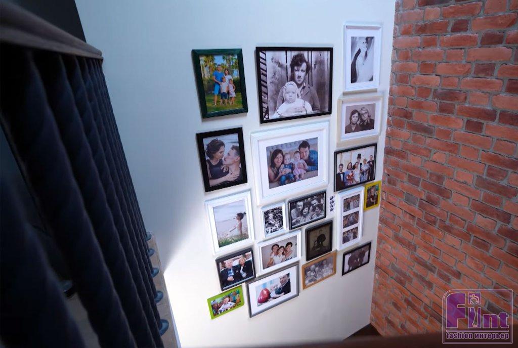 Лестница в доме актёра украшена многочисленными картинами и памятными фотографиями, которые потрясающе органично смотрятся на фоне классической кирпичной кладки. Большинство изображений запечатлели счастливые моменты, которые супруги пережили в поездках по миру. Дмитрий и Екатерина – большие поклонники путешествий. Картины, постеры и фотографии наполняют всё пространство дома Дмитрия Мурашева, и за каждым изображением скрывается своя история.