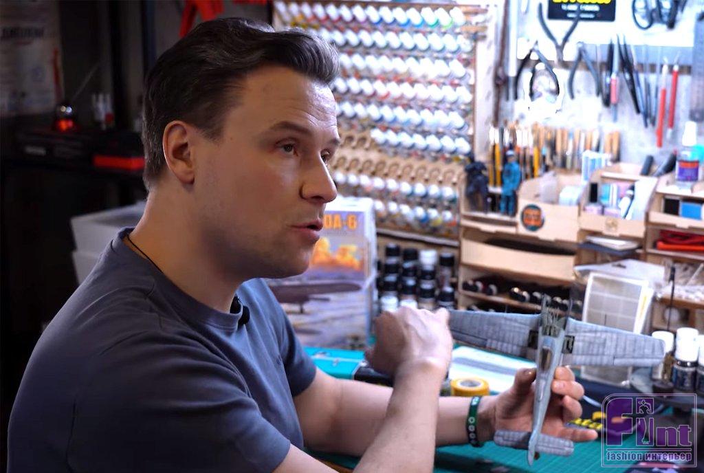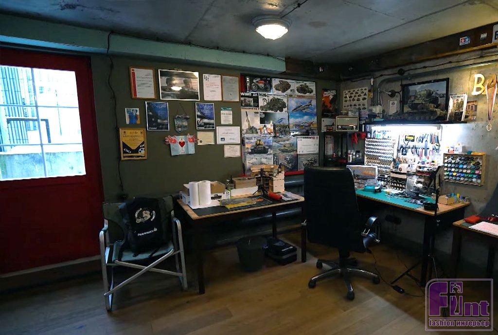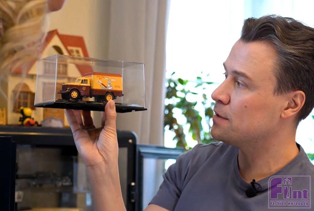 Прихожая в квартире актёра небольшая. Из неё можно сразу попасть на кухню, где любит готовить хозяйка дома, поднявшись по установленной в углу винтовой лестнице, ведущая на второй этаж квартиры. На стене рядом со входной дверью в квартиру Дмитрия висит огромный плакат с первым космонавтом Земли Юрием Гагариным. Любовь к славному советскому прошлому у Дмитрия не показная, а глубокая и искренняя. Лестница из прихожей позволяет переместиться не только на кухню, но и в квартиру, поскольку на первом этаже, помимо прихожей, расположен гостевой санузел и любимое место актёра – его рабочий кабинет, который он с любовью называет своей «берлогой». Рабочий кабинет актёра полностью отдан под его хобби. Актёр является страстным поклонником моделирования, и его «берлога» – это самая настоящая мастерская.