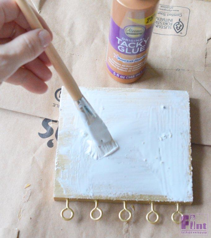 Перед тем как повесить ваши барельефы, вы можете дополнительно нанести на каждое панно тонкий слой клея-лака для декупажа или универсальной грунтовки на водной основе для защиты и укрепления поверхности. Мы использовали грунтовку Oscar на латексной основе, которая выручала нас не только при ремонте, но и во многих DIY проектах.