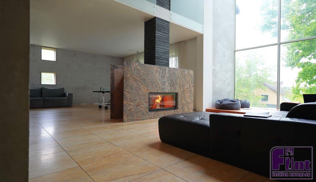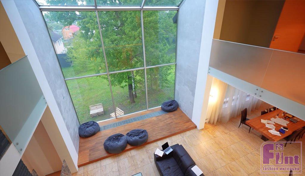 Всё же в загородном доме Юлии Михалковой можно найти кое-что, что расскажет о его хозяйке, например, несколько настольных книг. Любимым местом в своём доме Юлия называет пространство между большим окном и роскошным дровяным камином. Здесь можно придвинуться поближе к огню, расположившись на диване, или плюхнуться на один из пуфов, которые находятся на невысоком постаменте. Вот в какой обстановке в голову Юлии Михалковой приходят самые смешные шутки.
